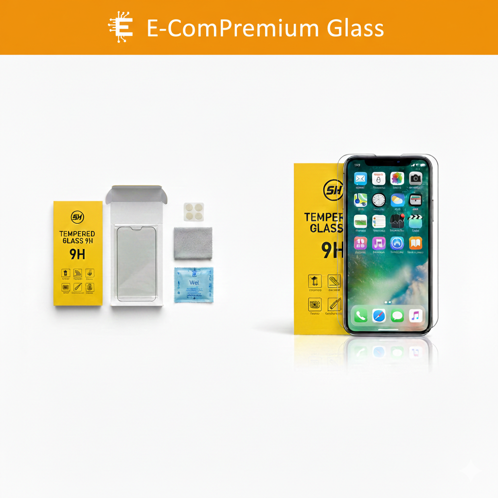 Ochranné tvrdené sklo E-ComPremium predstavuje najvyššiu triedu ochrany zobrazovacieho panelu pre mobilné zariadenia. Je vyrobené z chemicky spevneného aluminosilikátového skla, ktoré prešlo procesom temperovania pre zvýšenie odolnosti voči nárazom a tlaku.