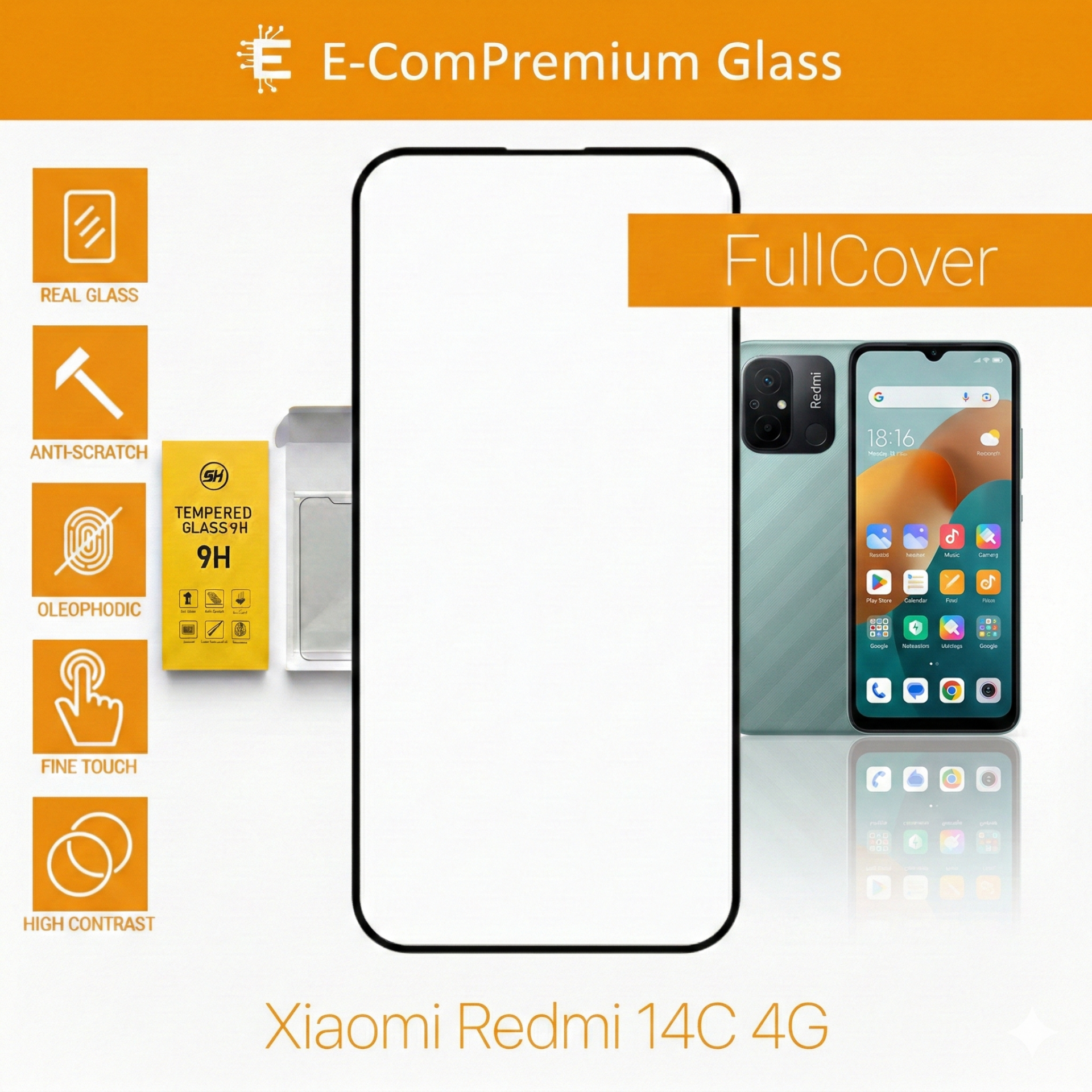 E-ComPremium Glass – Tvrdené sklo pre Xiaomi Redmi 14C 4G ponúka 360° ochranu s pokrytím od okraja po okraj, čím zaisťuje ochranu obrazovky a okrajov pred poškriabaním a nárazmi. Vychutnajte si ultračistú priehľadnosť HD a jednoduchú inštaláciu bez bublín, ktorá zachováva kvalitu obrazovky.