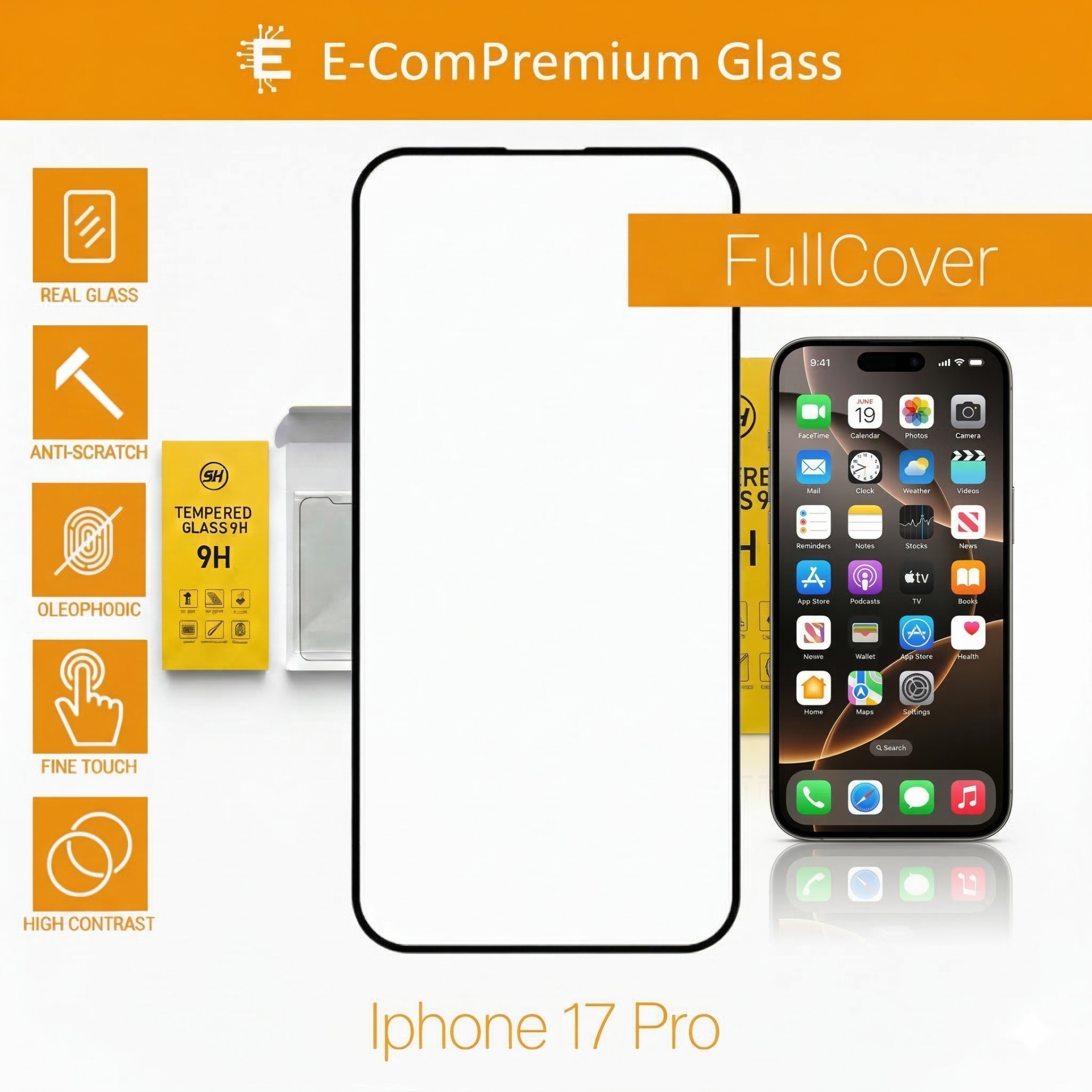 Ochranné tvrdené sklo E-ComPremium predstavuje najvyššiu triedu ochrany zobrazovacieho panelu pre mobilné zariadenia. Je vyrobené z chemicky spevneného aluminosilikátového skla, ktoré prešlo procesom temperovania pre zvýšenie odolnosti voči nárazom a tlaku.